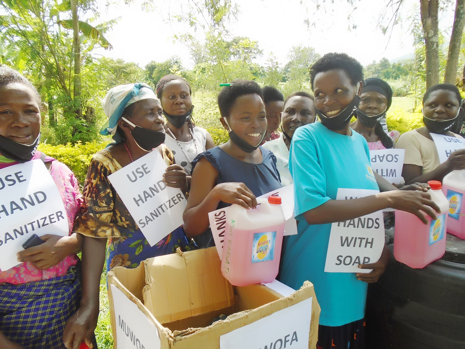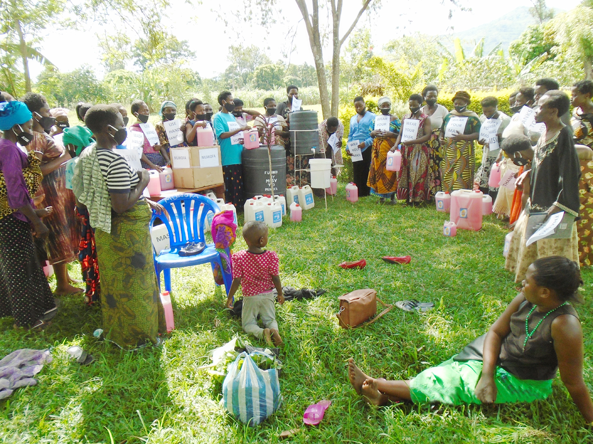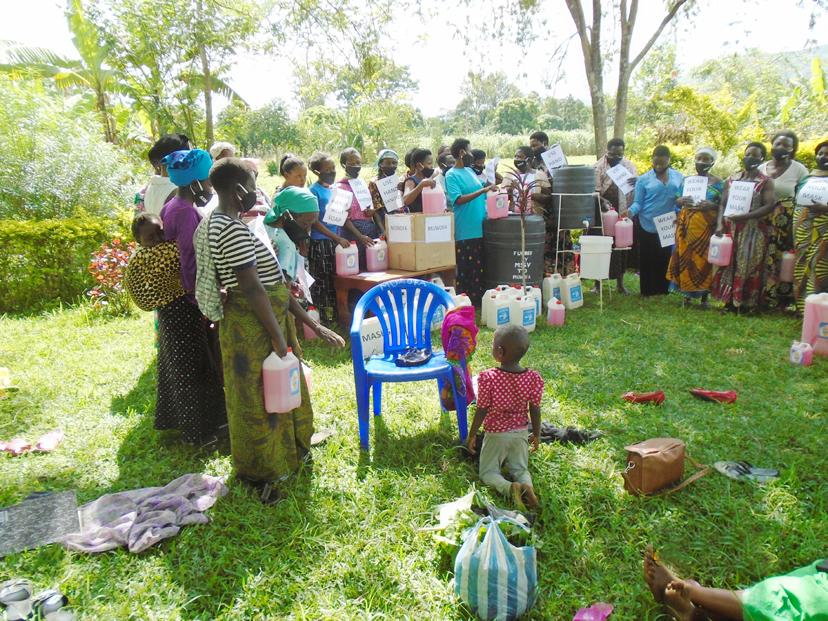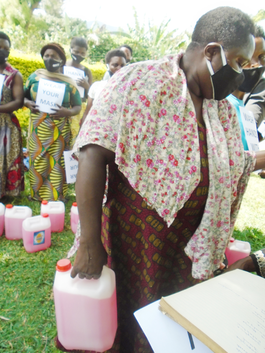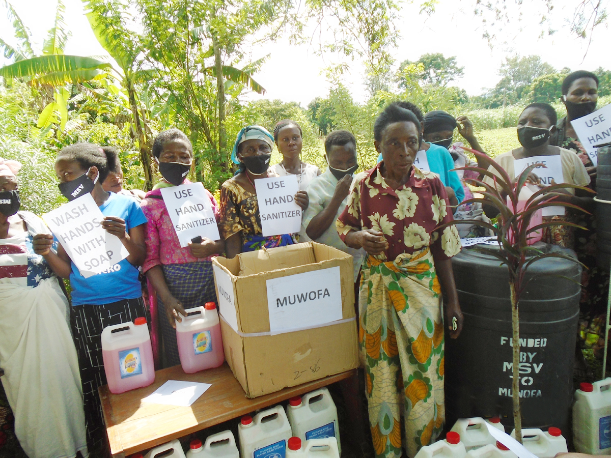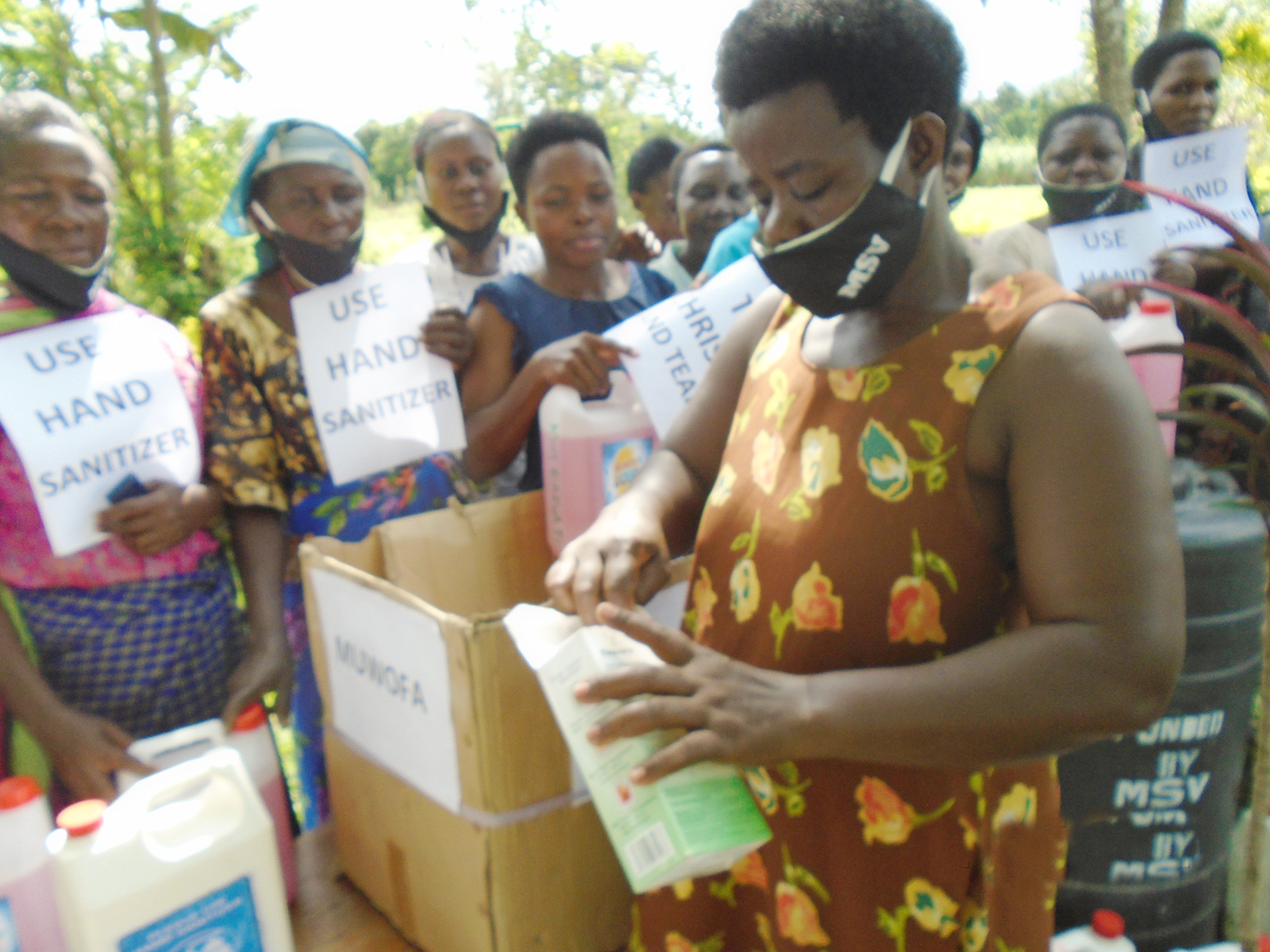 With support from Marie Schlei Association (MSA) MUWOFA members were supplied with soap, liquid soap, masks, hand washing utilities, temperature guns, sanitizer and many others, in Kinyamaseke 1 as measure to fight the spread of Covid 19
