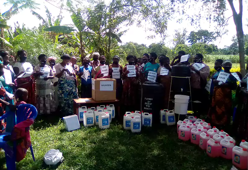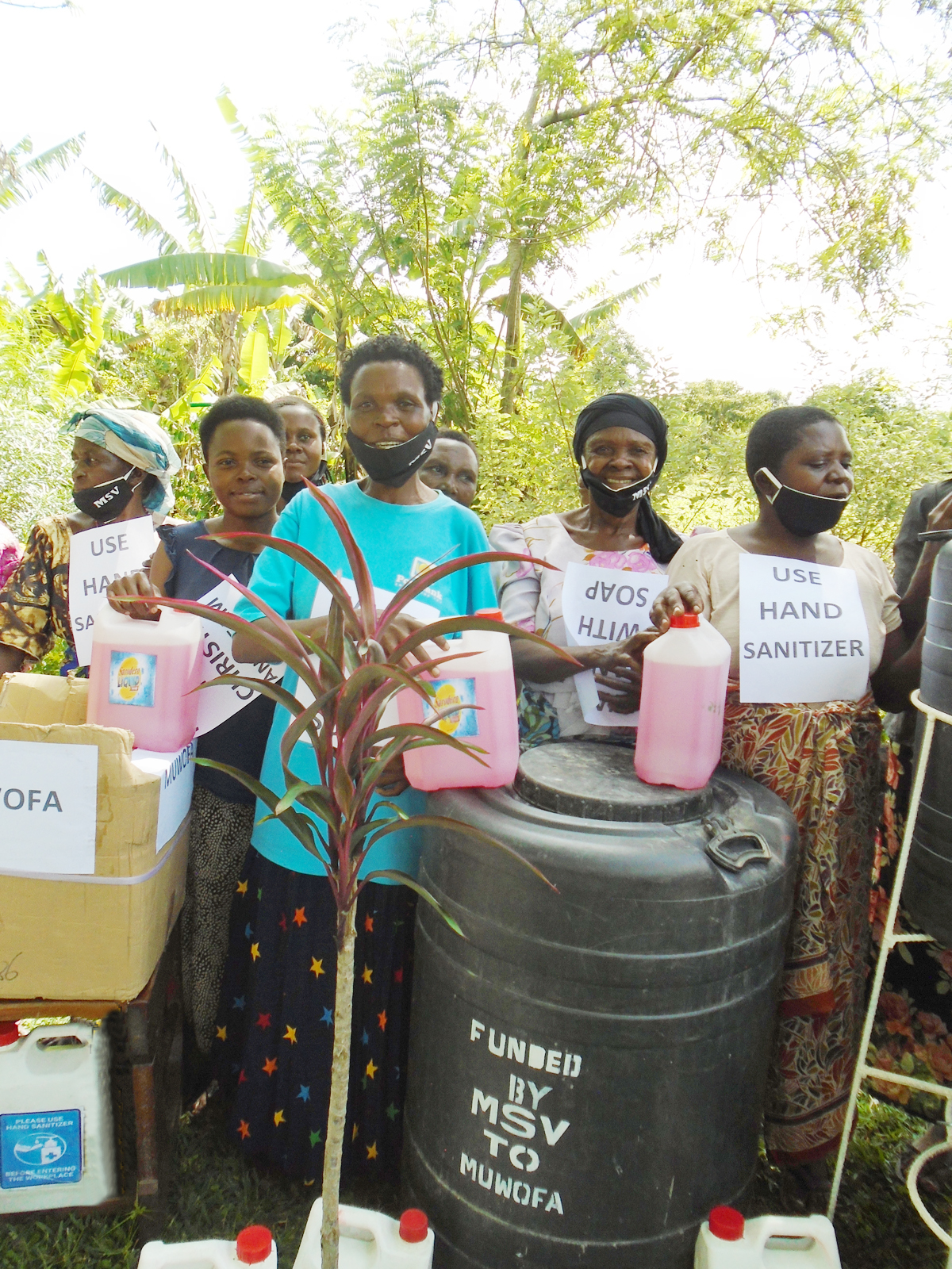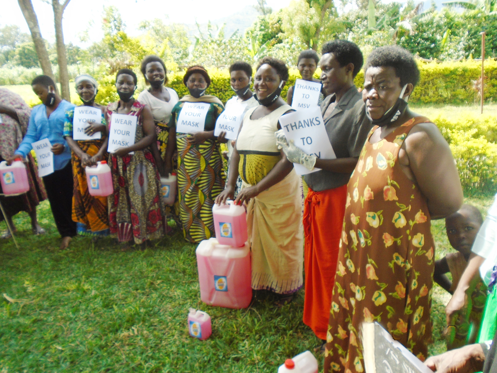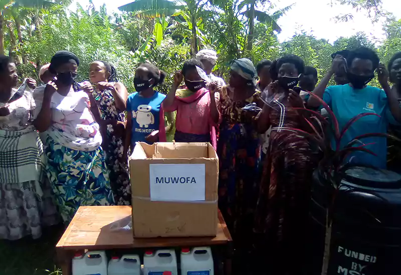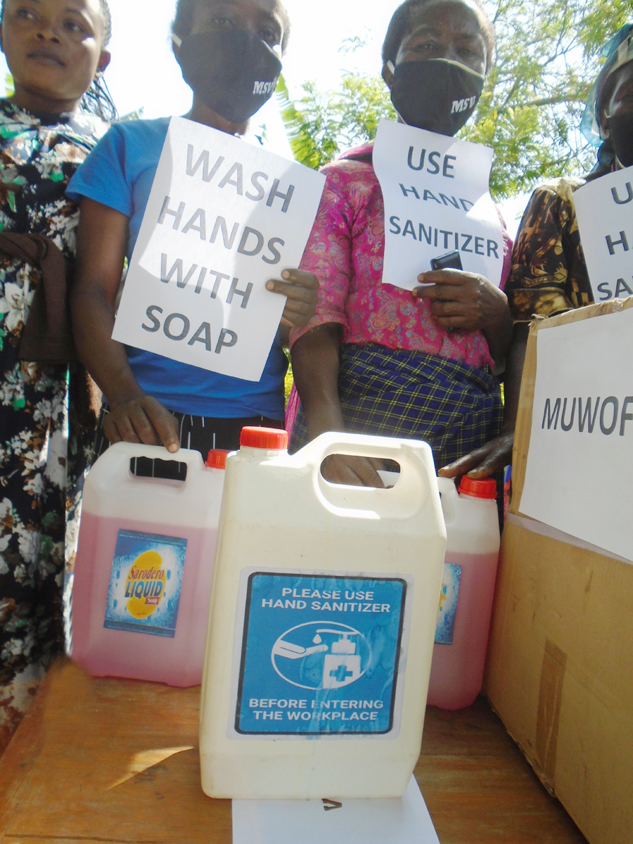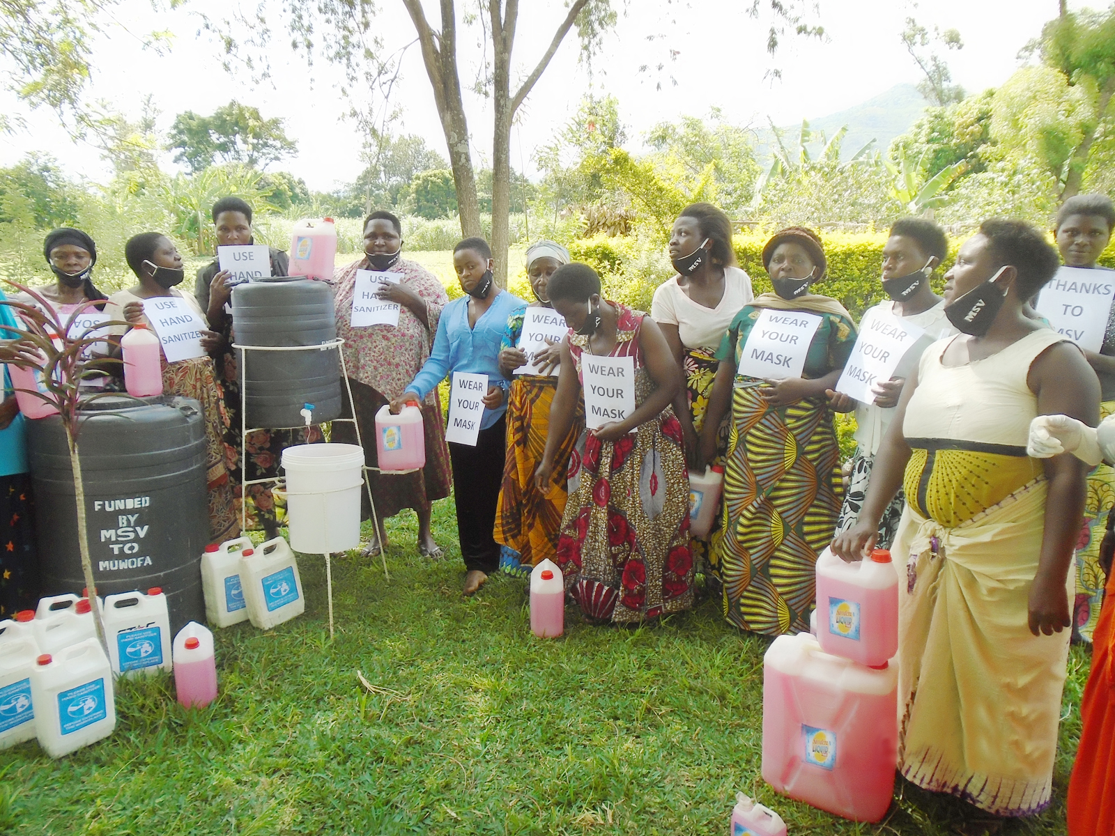 With support from Marie Schlei Association (MSA) MUWOFA members were supplied with soap, liquid soap, masks, hand washing utilities, temperature guns, sanitizer and many others, in Kinyamaseke 1 as measure to fight the spread of Covid 19