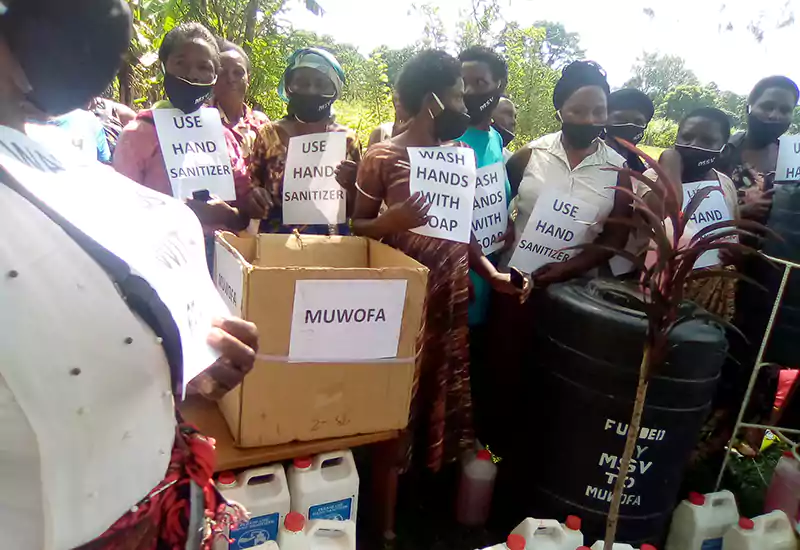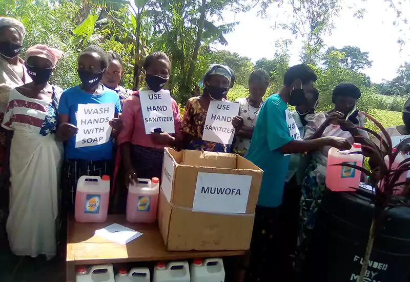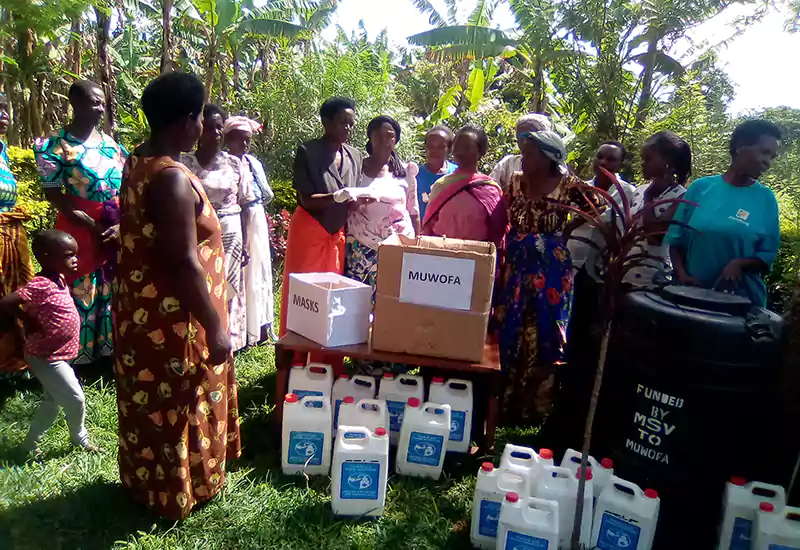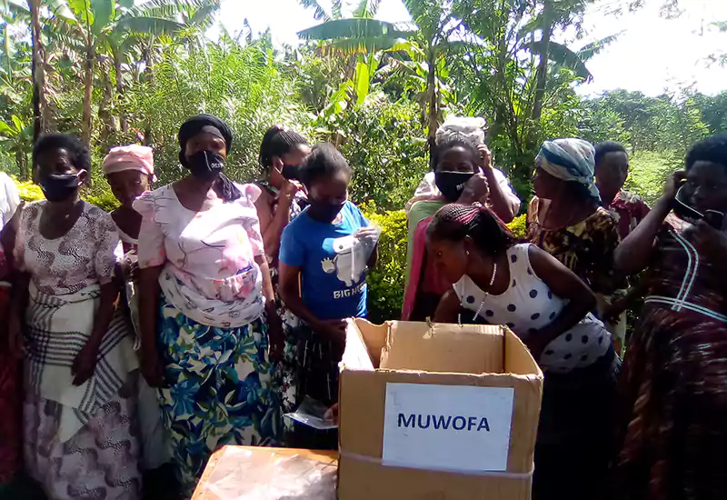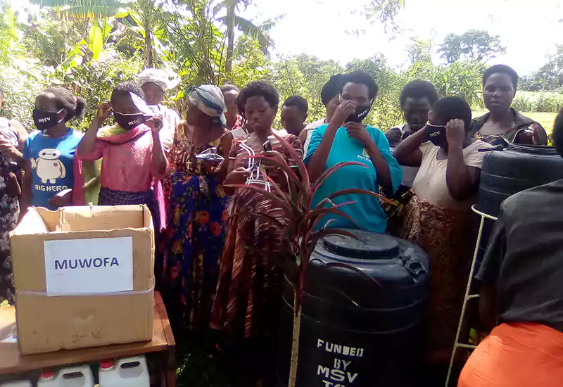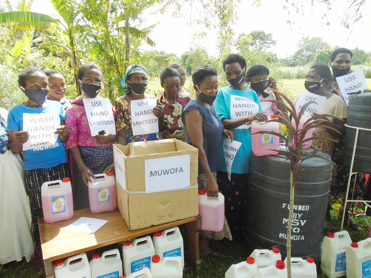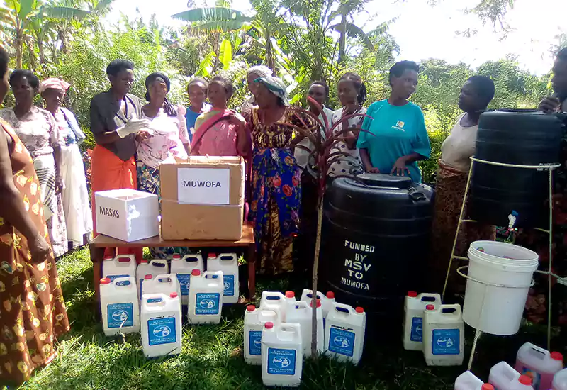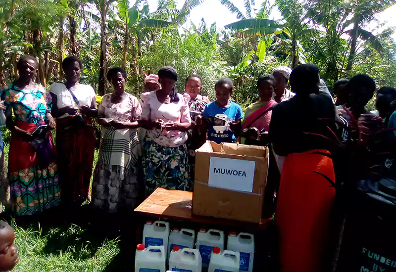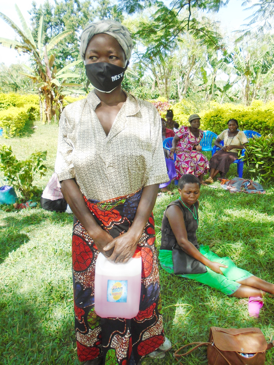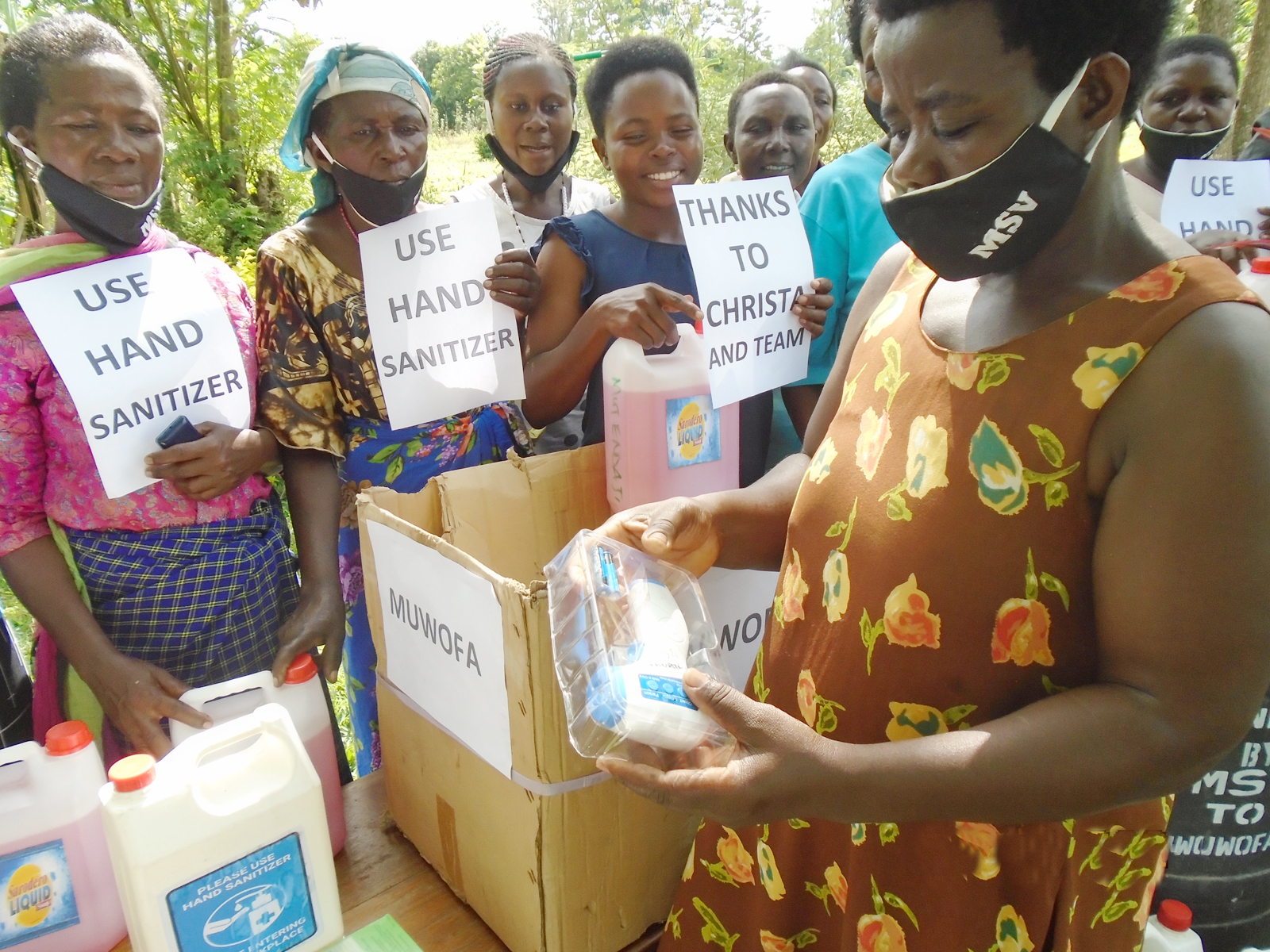 With support from Marie Schlei Association (MSA) MUWOFA members were supplied with soap, liquid soap, masks, hand washing utilities, temperature guns, sanitizer and many others, in Kinyamaseke 1 as measure to fight the spread of Covid 19