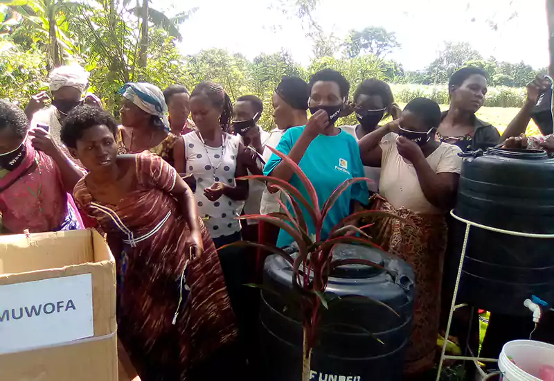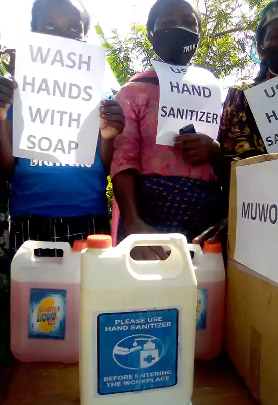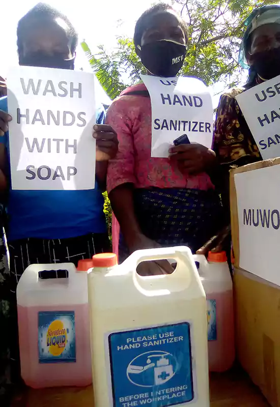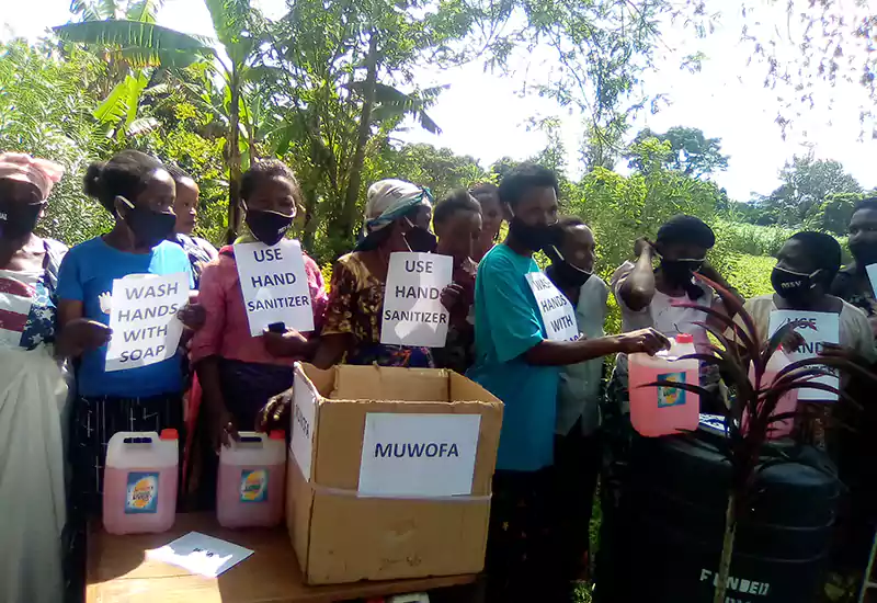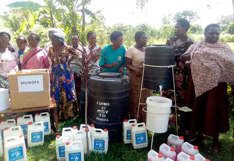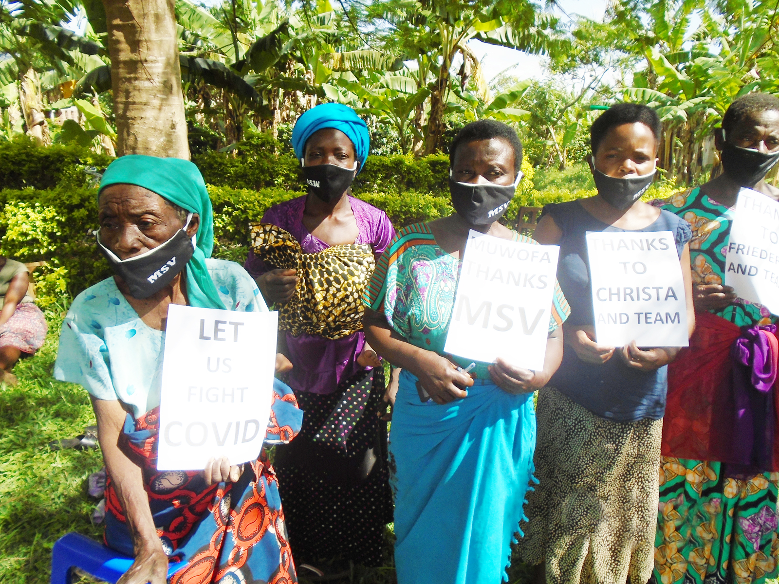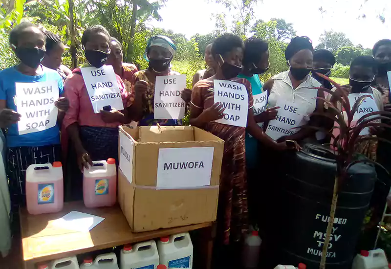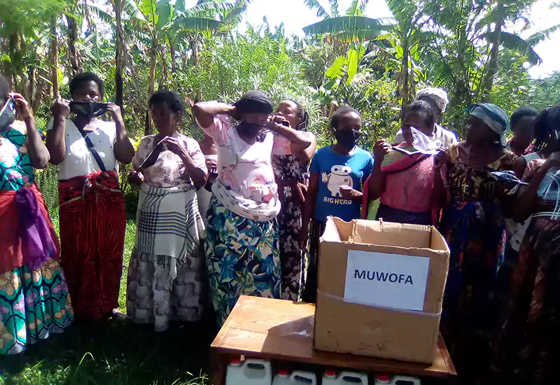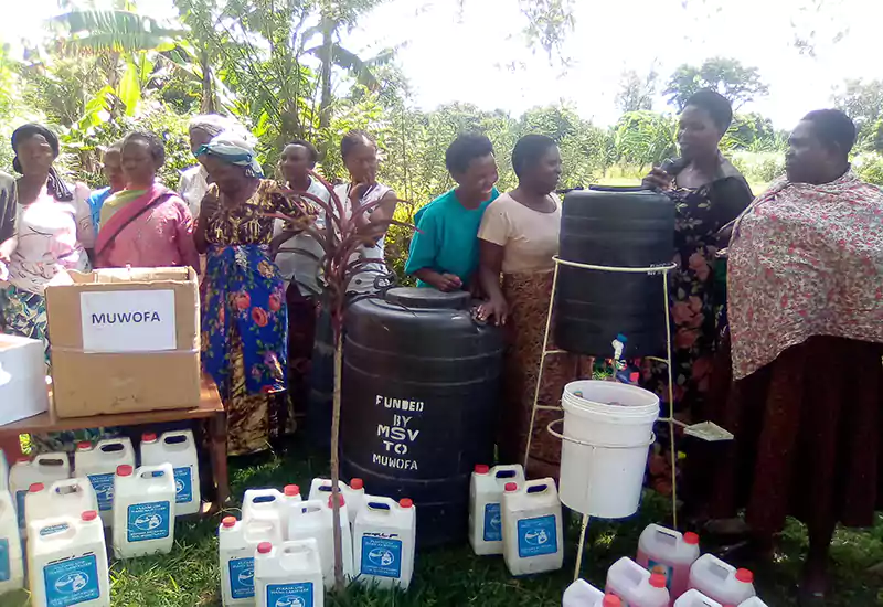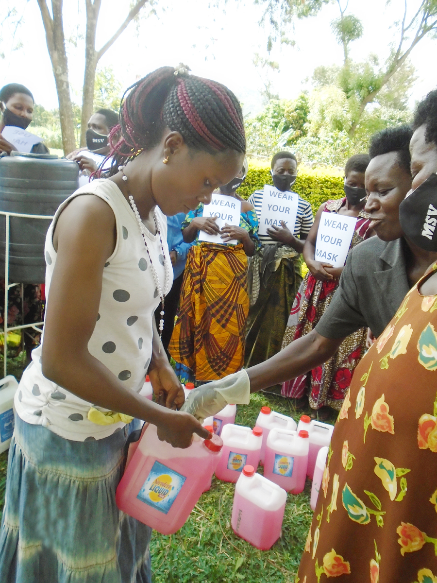 With support from Marie Schlei Association (MSA) MUWOFA members were supplied with soap, liquid soap, masks, hand washing utilities, temperature guns, sanitizer and many others, in Kinyamaseke 1 as measure to fight the spread of Covid 19