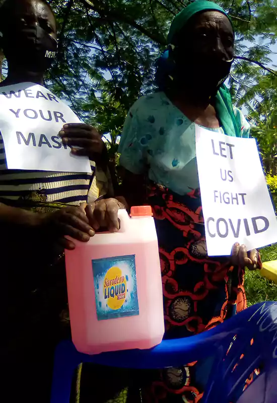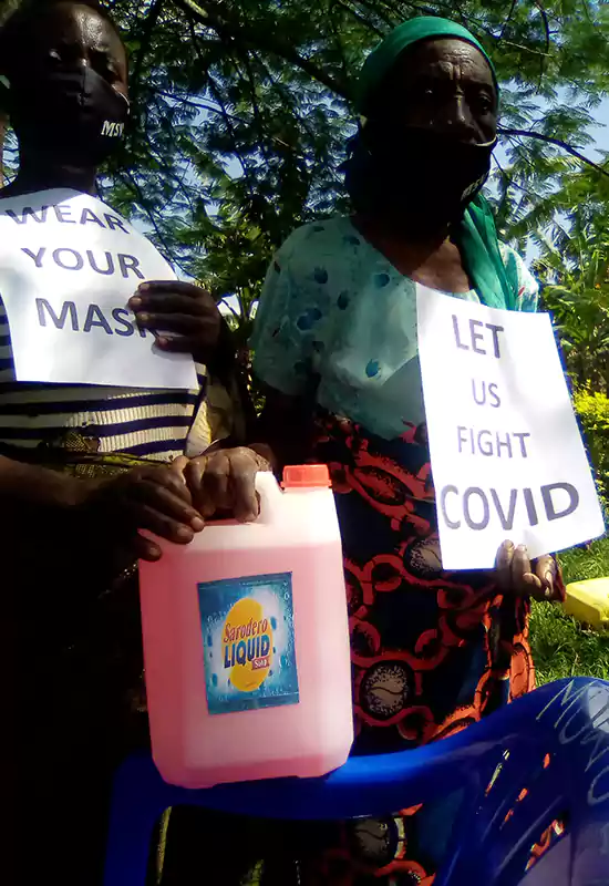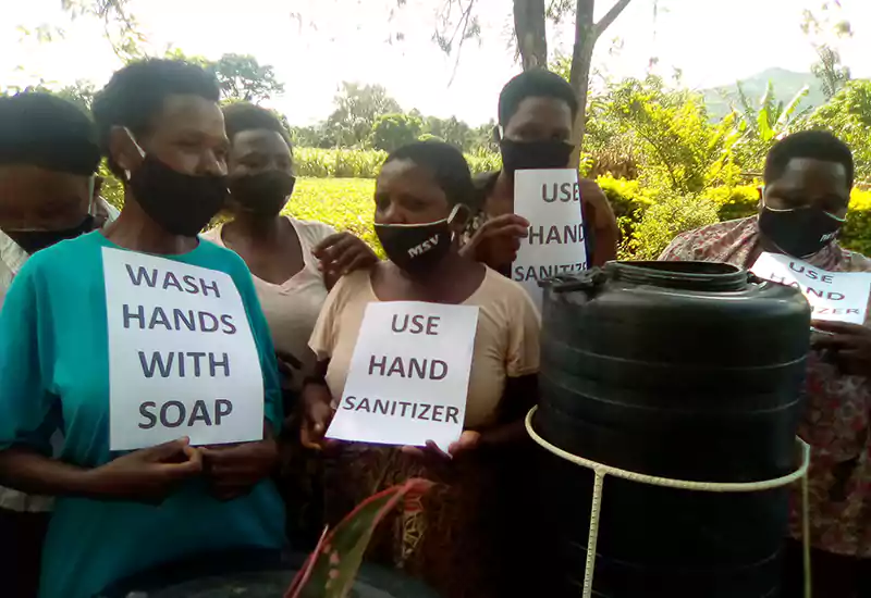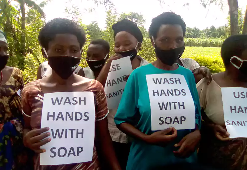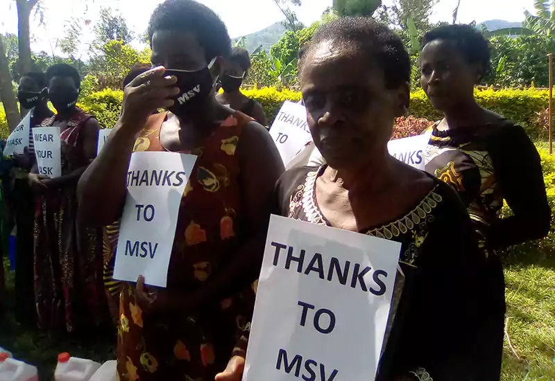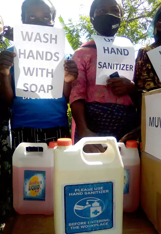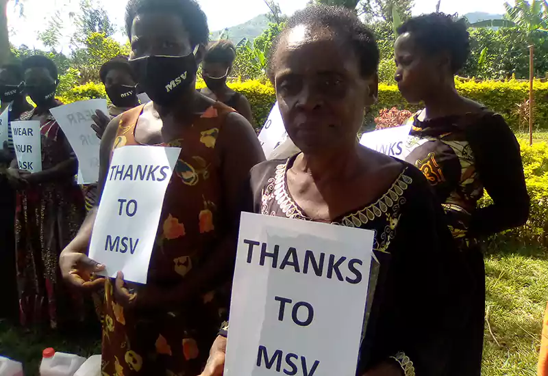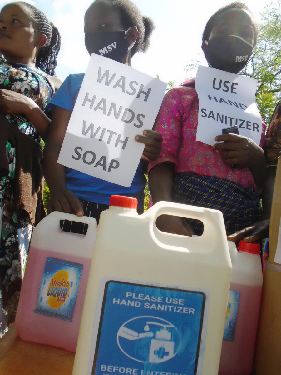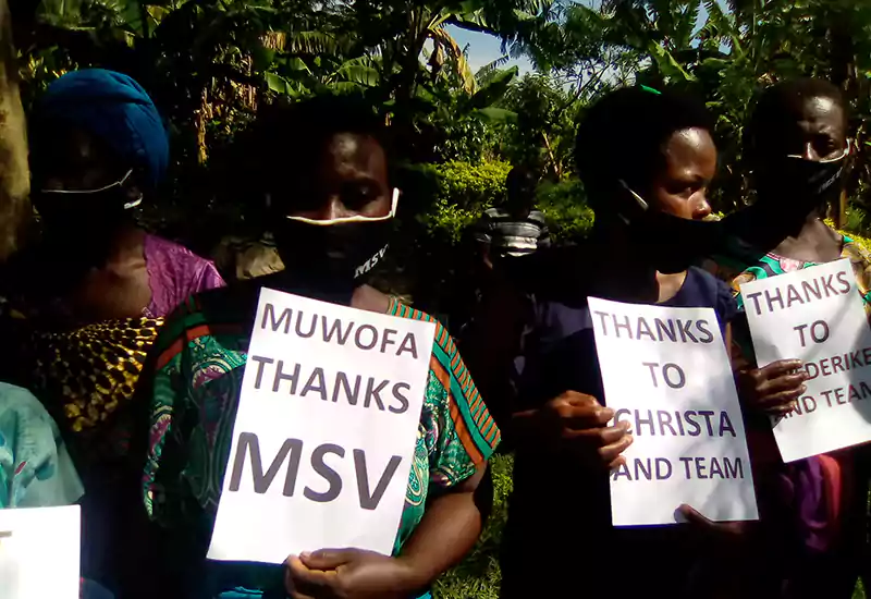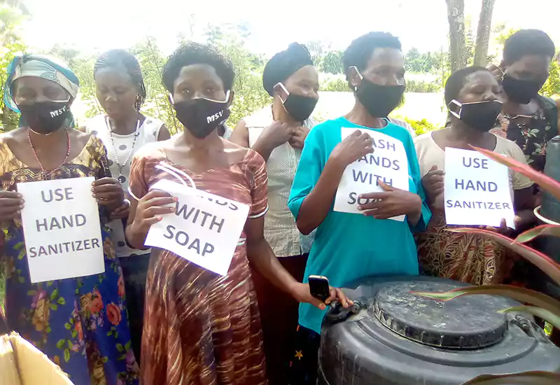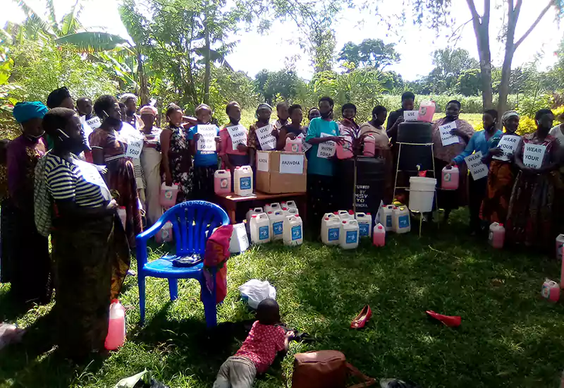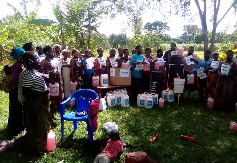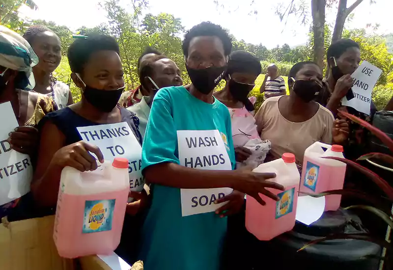 With support from Marie Schlei Association (MSA) MUWOFA members were supplied with soap, liquid soap, masks, hand washing utilities, temperature guns, sanitizer and many others, in Kinyamaseke 1 as measure to fight the spread of Covid 19