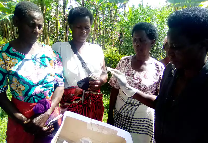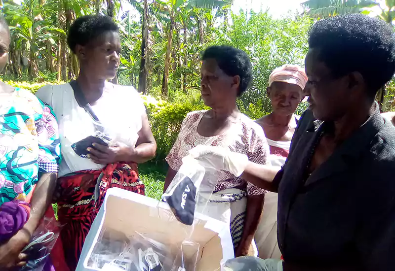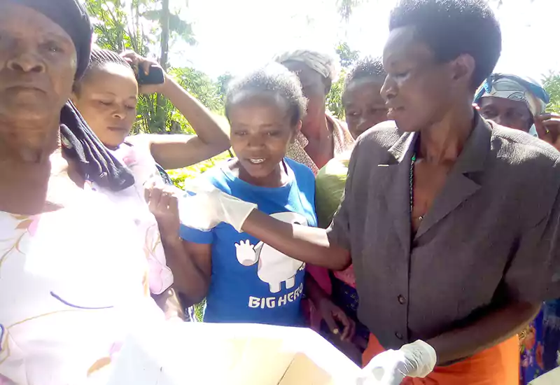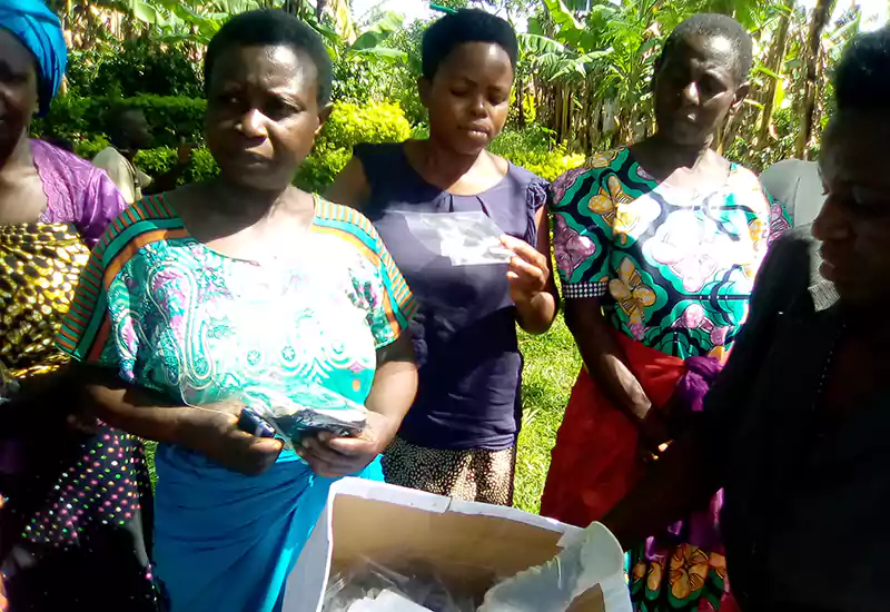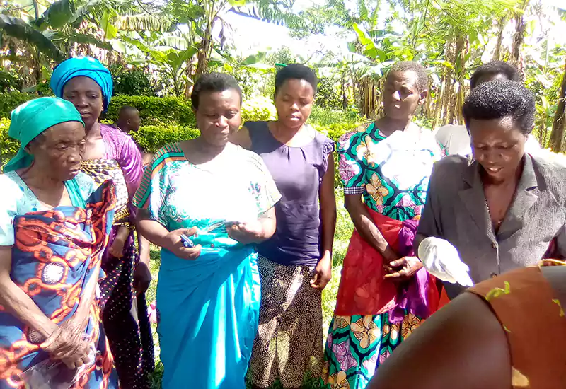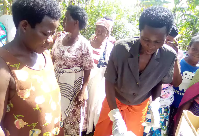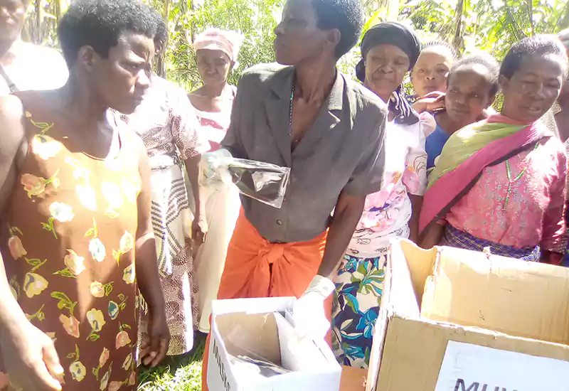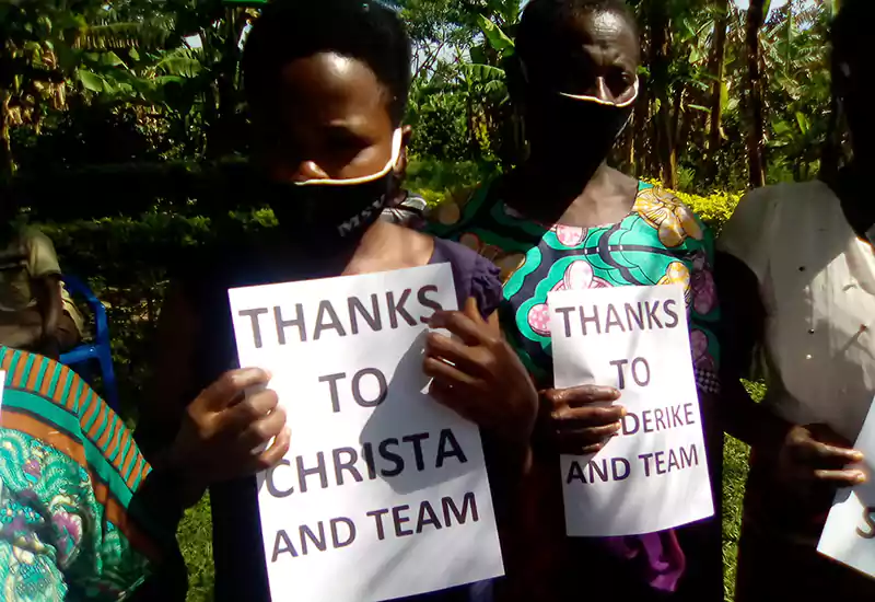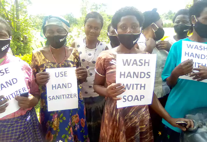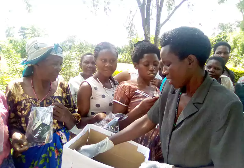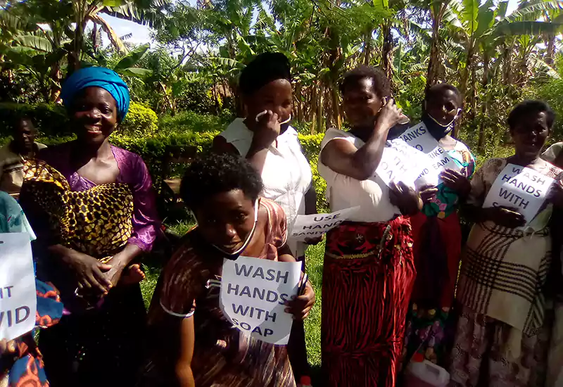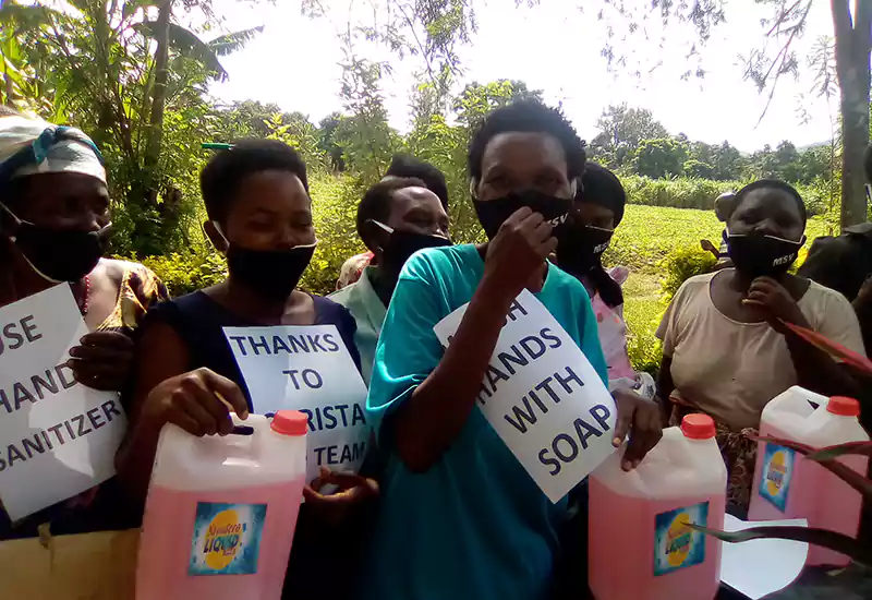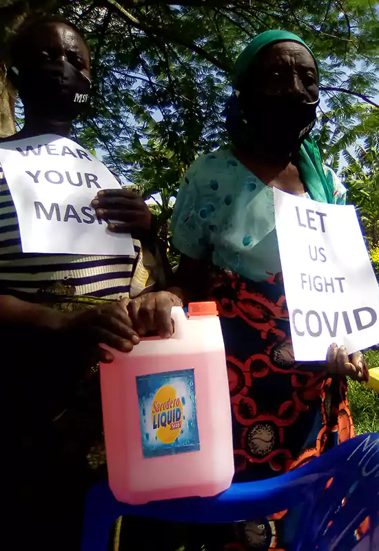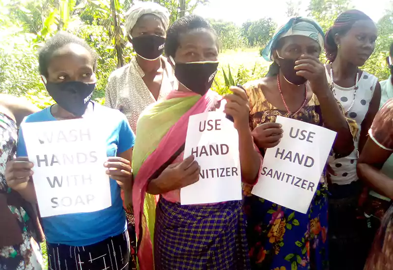 With support from Marie Schlei Association (MSA) MUWOFA members were supplied with soap, liquid soap, masks, hand washing utilities, temperature guns, sanitizer and many others, in Kinyamaseke 1 as measure to fight the spread of Covid 19